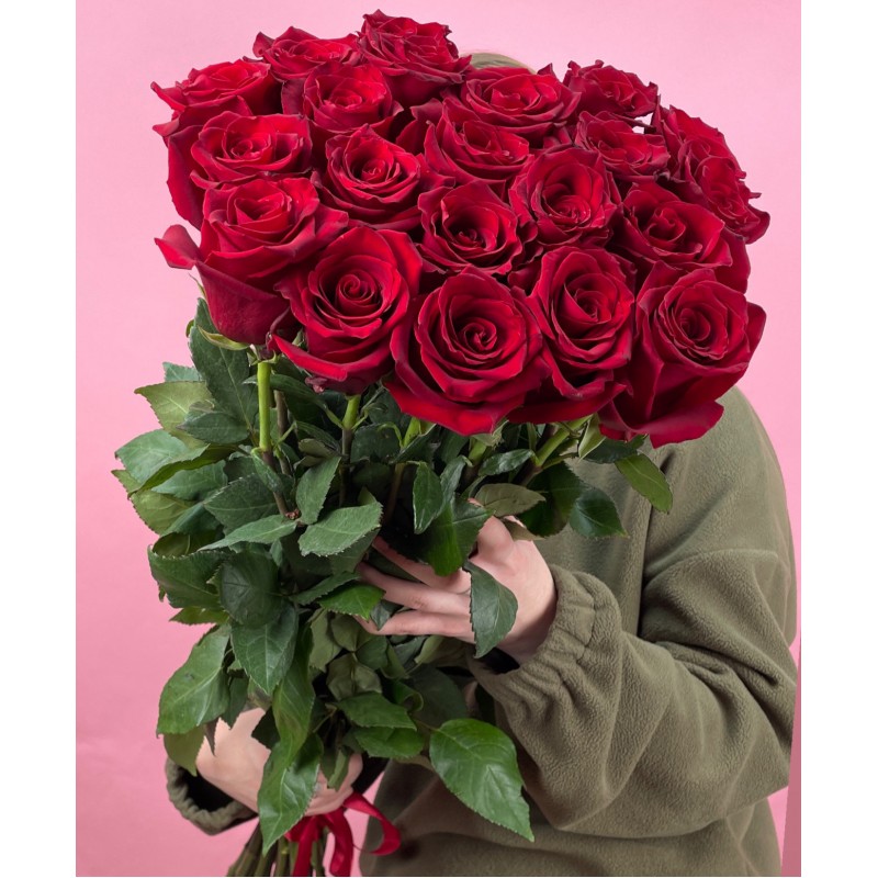 Букет из Эквадорских премиальных роз 80-90 см. На фото изображено 19 штук. Основная стоимость указана за букет из 19 шт. При оформлении заказа выберите, пожалуйста, необходимый размер букета (количество роз)